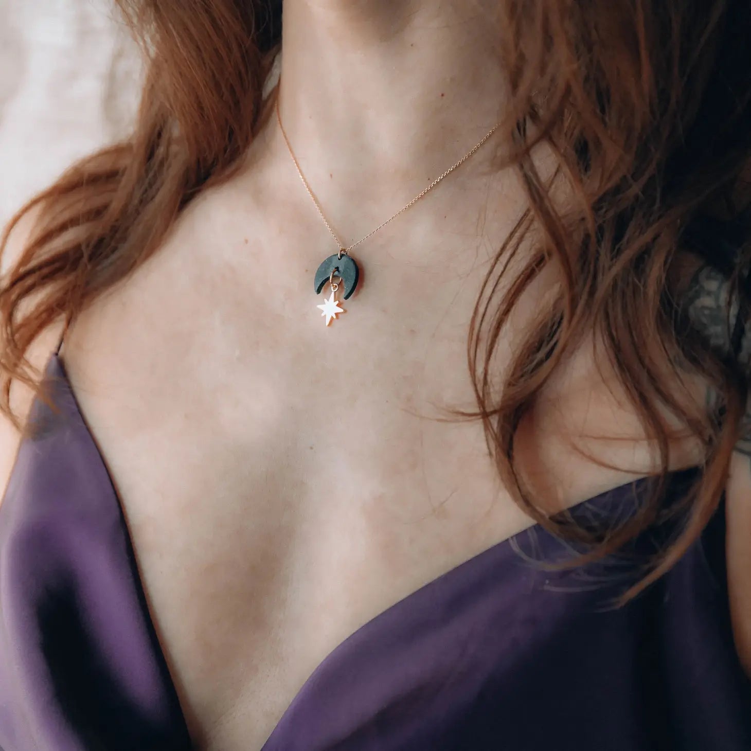 Made with polymer clay and gold plated brass charm. Gold plated sterling silver 0.9mm chain